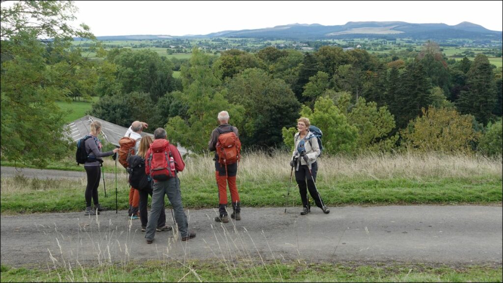 Comme le montre la description de l’itinéraire, à part les puys, peu de points pour se repérer sur la carte et le terrain 😊. C’est en effet un petit circuit serpentant entre les puys du sud de la chaîne que j’ai proposé aux participants de ce dimanche. Nous avons utilisé des sentes et sentiers peu connus des présents, plus par ceux qui participent à nos marches sportives dans le secteur. Peu de curiosité sinon au début de la marche le passage au-dessus du cratère Kilian, aujourd’hui grande dépression noyée dans la verdure, avant-hier (9000 ans av JC) éruption explosive majeure de la chaîne. De gros blocs de cette éruption ont été identifiés au sommet du puy de Dôme, à une distance de 1500 m et 400 m plus haut. Après le passage vers le col de la Moréno, nous entrons dans des espaces plus ouverts qui offrent de beaux points de vue sur les puys que nous avons tangentés et ceux que nous rencontrerons par la suite.