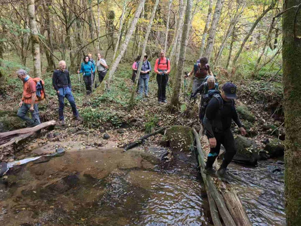Les sentiers empruntés nous amènent à Ischamps dont le nom est issu du patois signifiant « essaims » et c’est après avoir suivi une rue nommée le chemin des abeilles que nous descendons vers le ruisseau Le Miodet. Sa traversée se fera sur un pont rudimentaire,