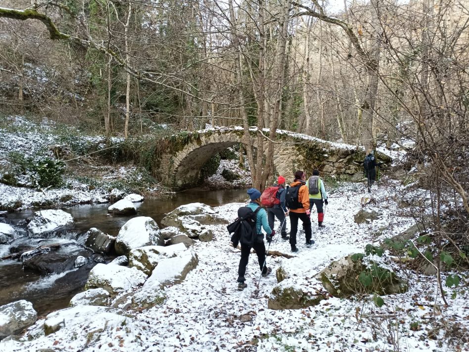 Après regroupement et les consignes, départ de la rando. C’est avec un groupe très déterminé que nous prenons le 1er chemin qui longe la Monne, passage au monastère de Randol et explications, puis passage au hameau de Randol.
