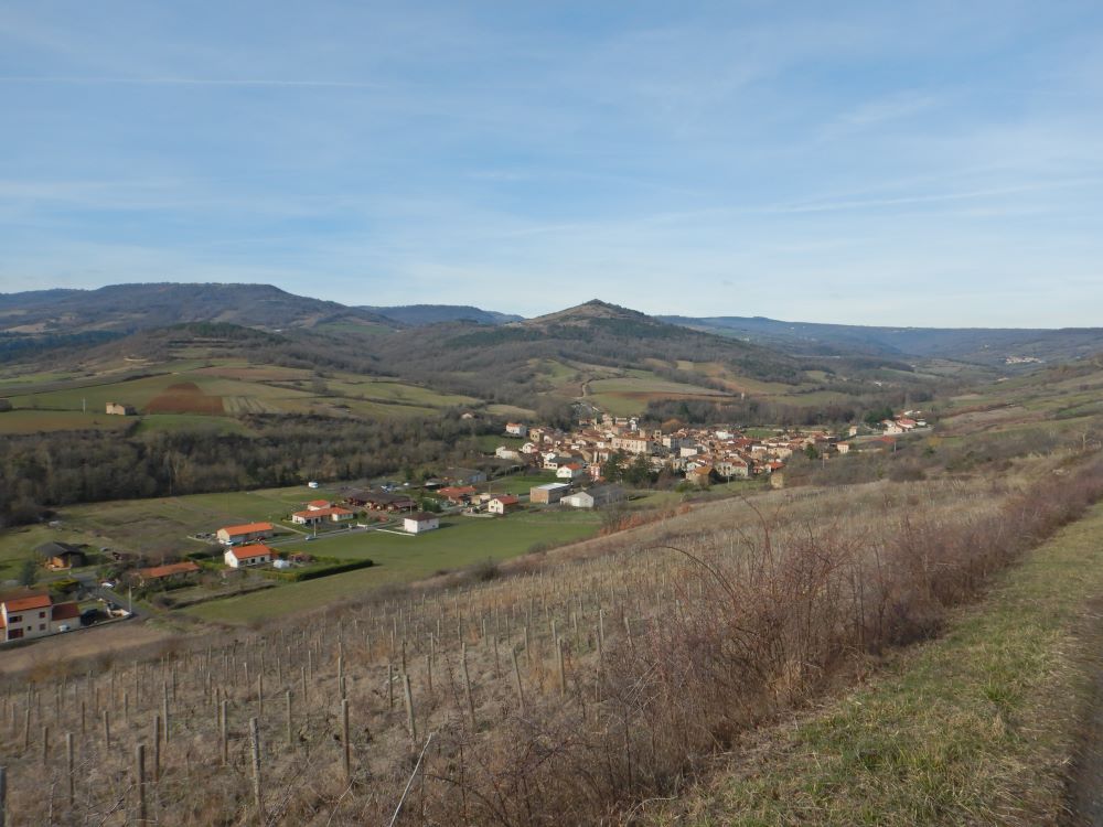 Des découvertes de vestiges d’époque gallo-romaine faites sur la commune de Gignat d’où nous partons, laissent supposer que le village était certainement implanté en bordure d’une voie antique reliant Clermont-Ferrand à Saint-Paulien (Le Puy en Velay). En prenant la direction de Chalus, perché sur un éperon basaltique, fondé après les invasions normandes, nous passons sur le Lembronnet (attention, pas la même orthographe que la région !) petit affluent de l’Allier, qui traverse le village. Première étape à la chapelle Sainte-Madeleine qui n’a plus de clocher, ses pierres ayant servi à la construction de celui de l‘église actuelle de Chalus. Après un petit tour vers le château qui ne représente maintenant qu’une petite partie des fortifications présentes au Moyen Âge, c’est vers Boudes bien connu pour son vin et la Vallée des Saints que nous nous dirigeons. Nous évitons le GRP préférant une petite sente pour franchir la Chaux Grande. En descendant vers le village, nous avons face à nous l’Avoiron, pic qui surplombe la vallée.